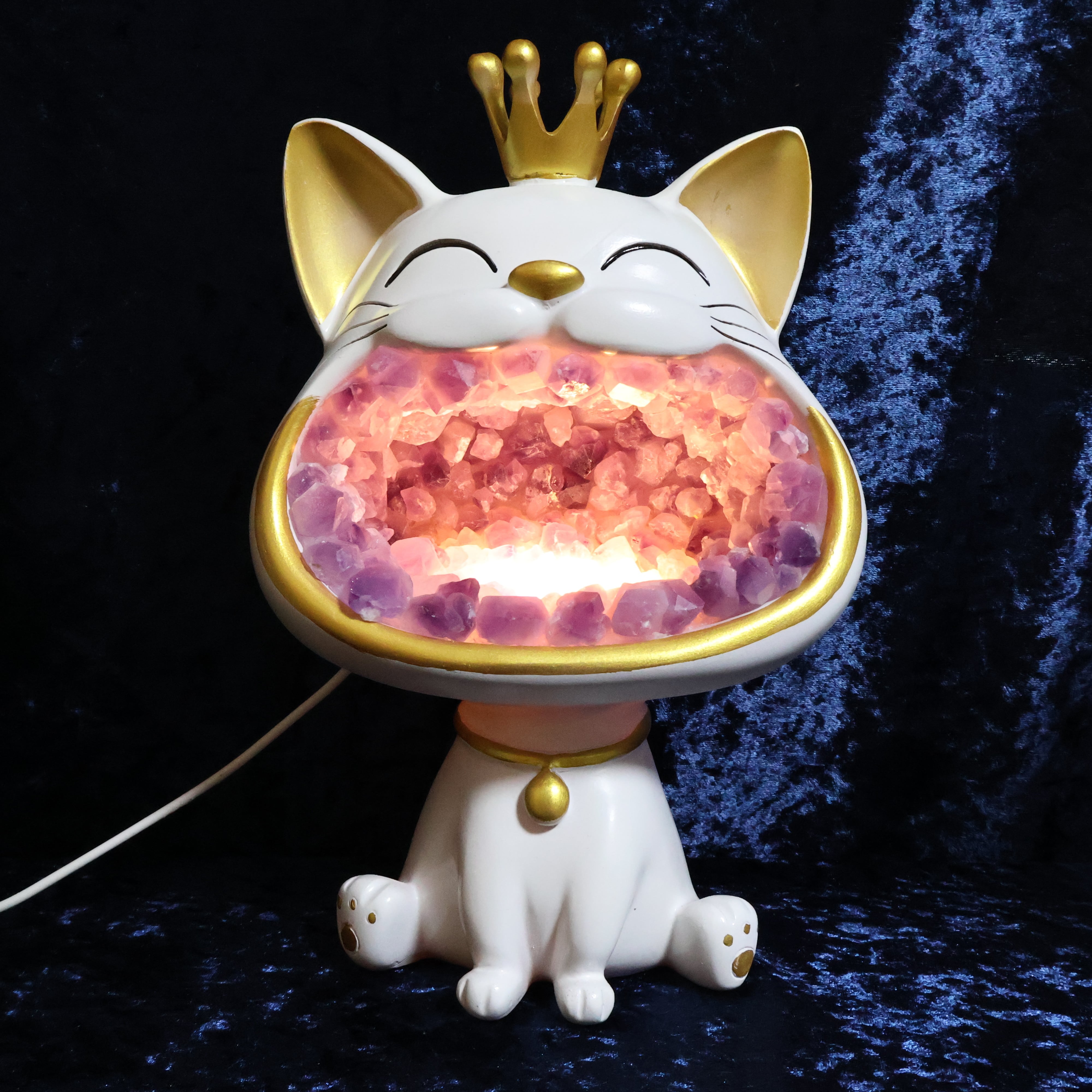 口の中にアメジストの原石タイプの物が敷き詰められたライト付の置物です。