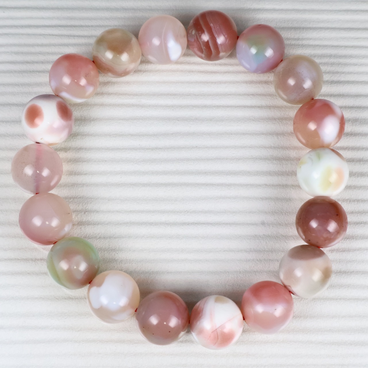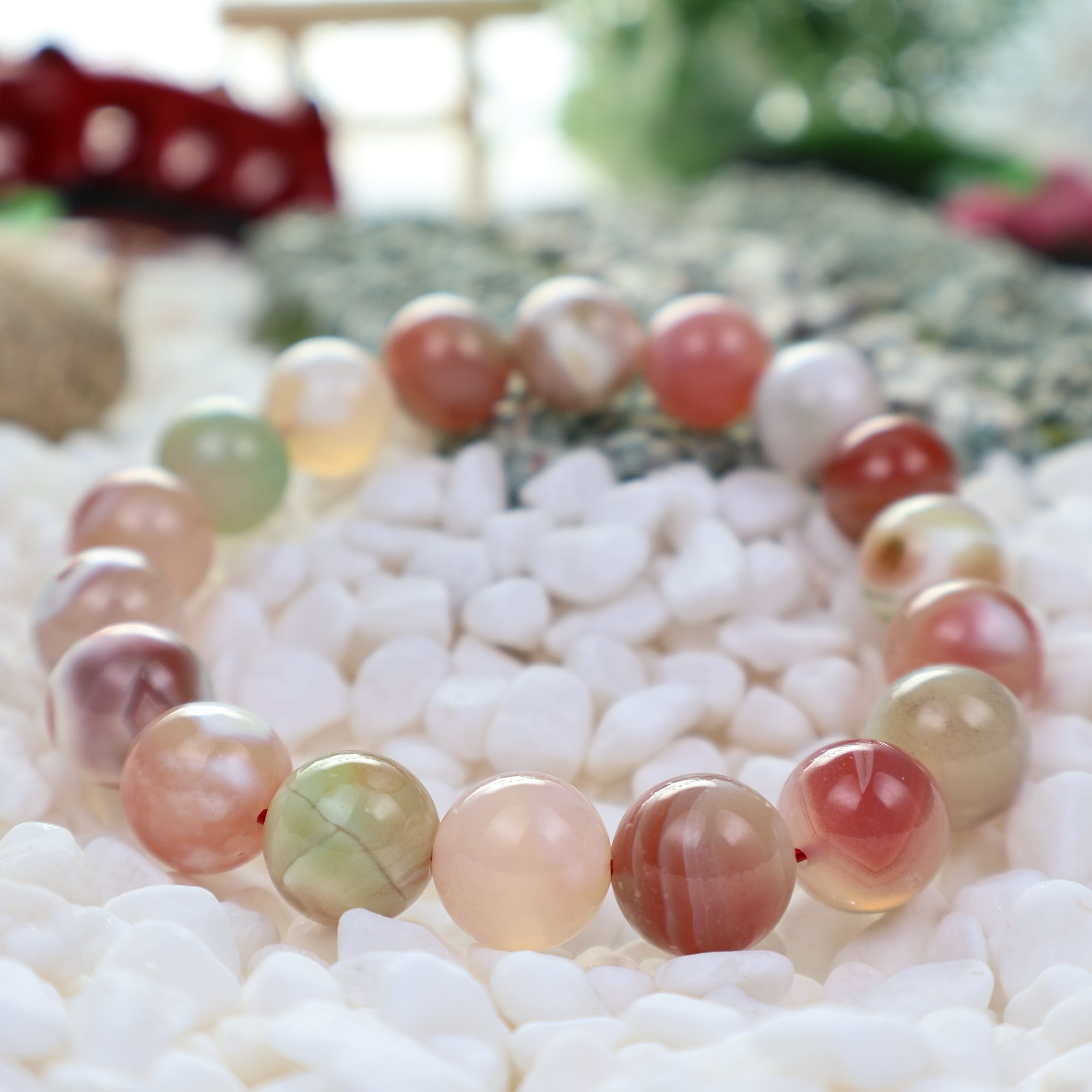 ミルクマーブルキャンディのような可愛らしい粒と透け感のある粒がMIXされた瑪瑙(メノウ)です。